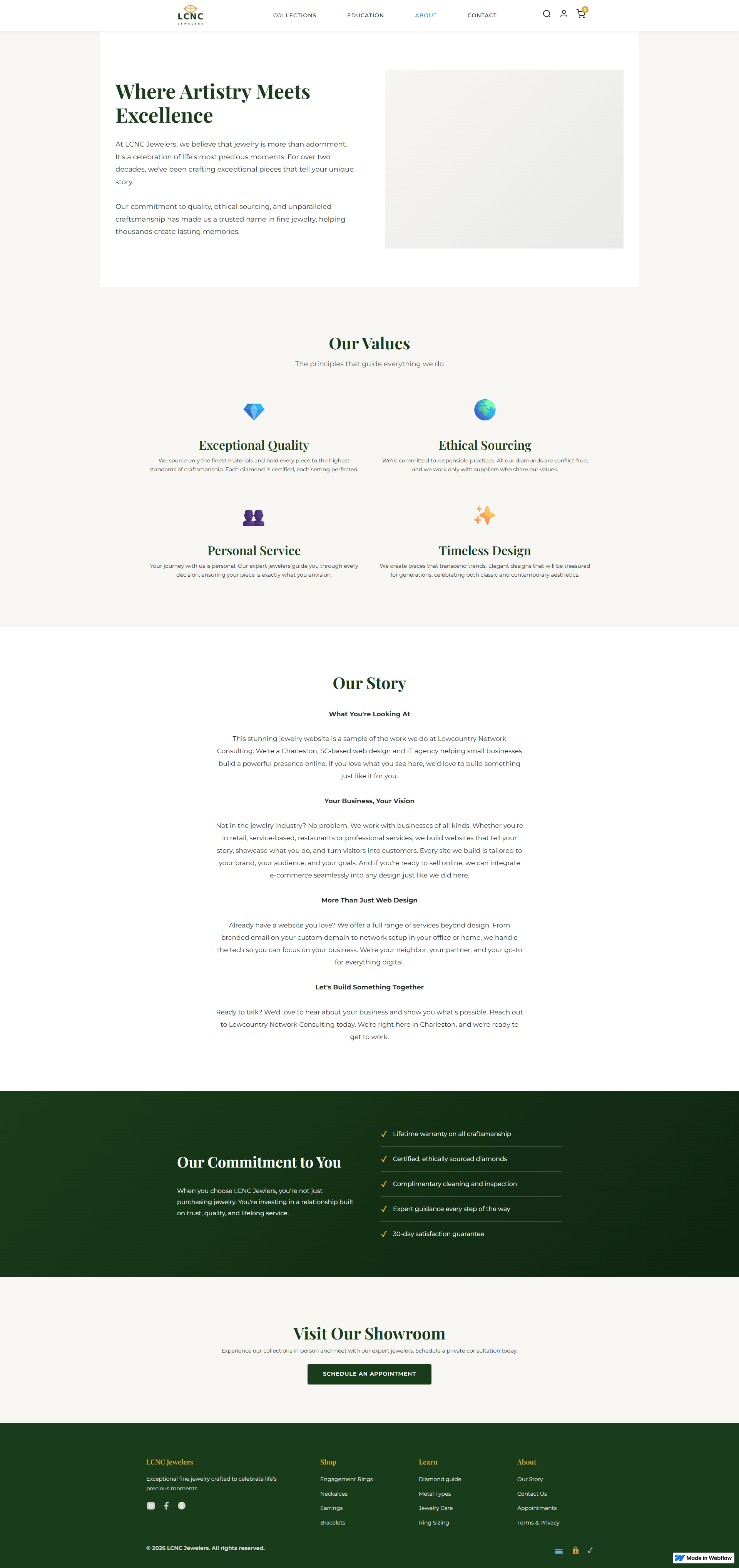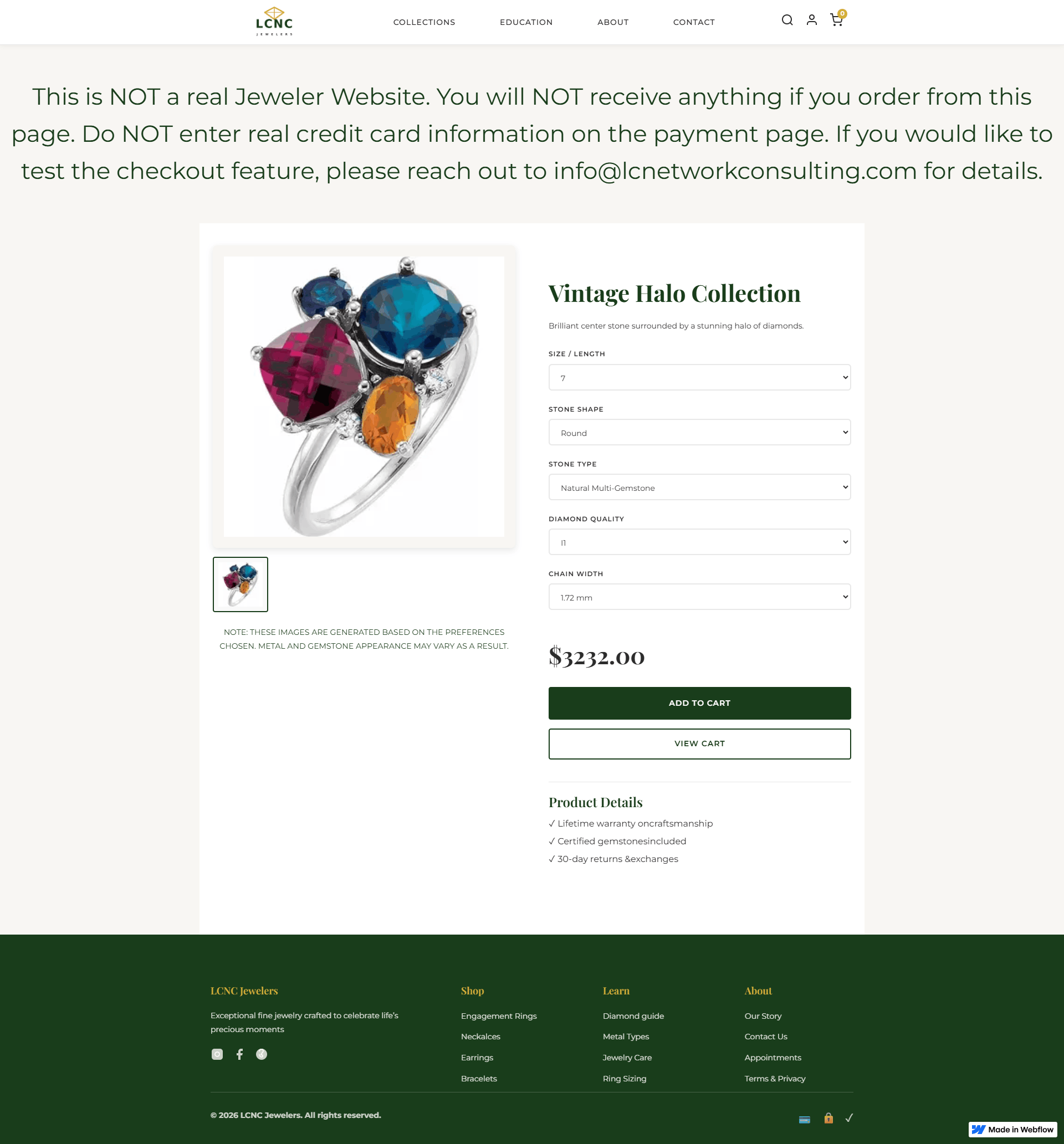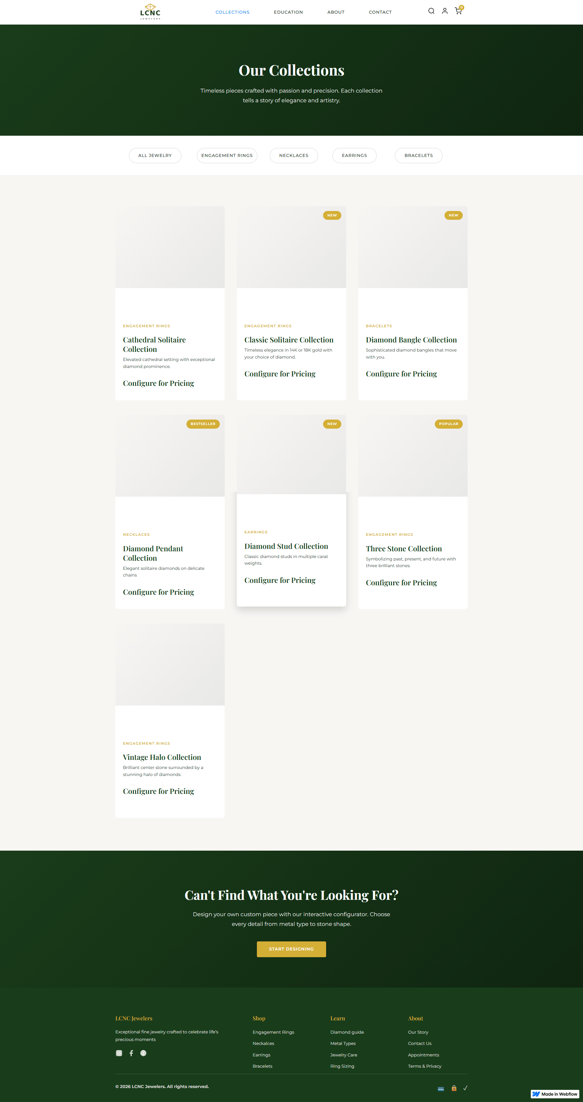 Custom luxury jewelry e-commerce site with a live product configurator and secure checkout integration.